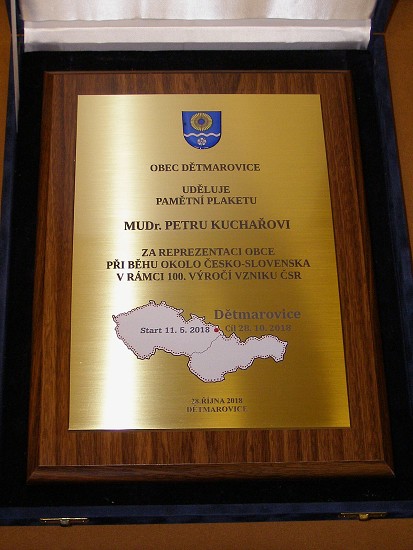 MUDr. Petr Kuchaře se svým doprovodem doběhl po více jak pěti měsících do své rodné obce přesně v den stého výročí založení Československa.