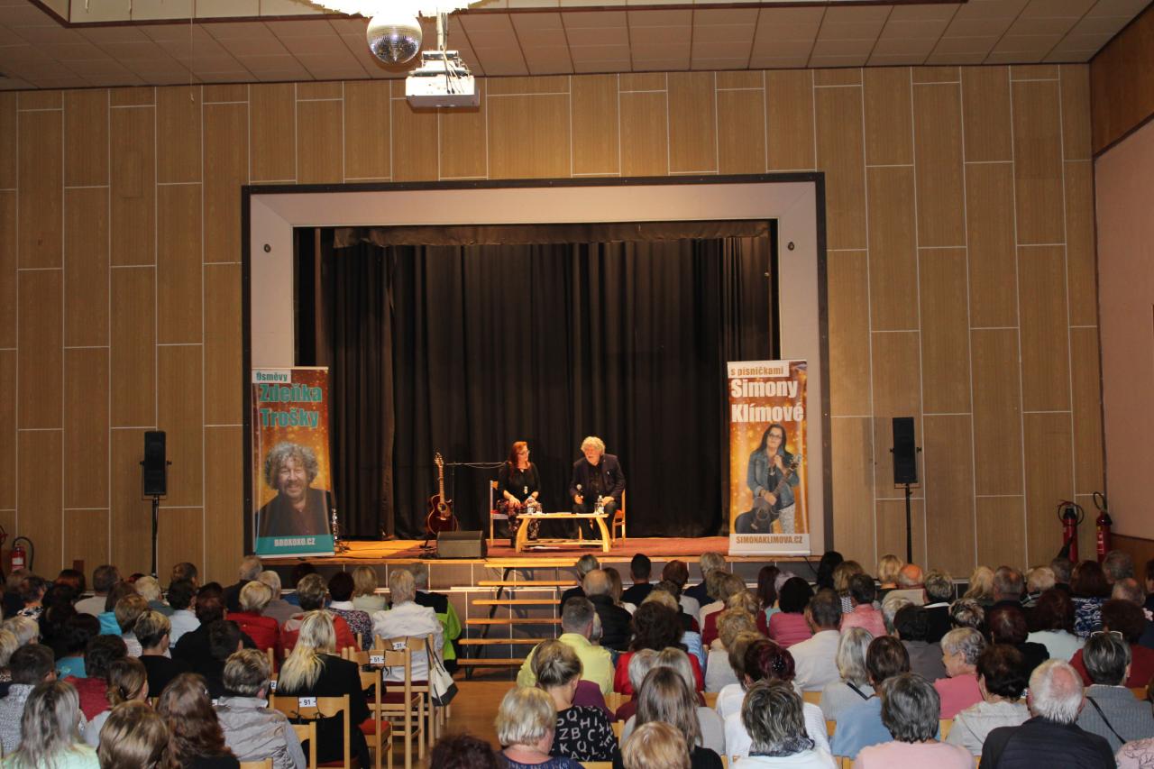 Dne 2.10.2024 v 18 hod. v Dělnickém domě v Dětmarovicích se konalo kulturní představení Zdeňka Trošky doprovázené písničkami Simony Klímové.