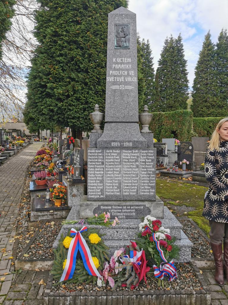 V pátek 24.10.2025 se již tradičně konal u pomníku padlým v 1. světové válce vzpomínkový akt k připomenutí Dne vzniku Československa. S projevem vystoupila místostarostka JUDr. Sylva Totková Kolderová a v krátkém programu se představili žáci ZŠ Dětmarovice.