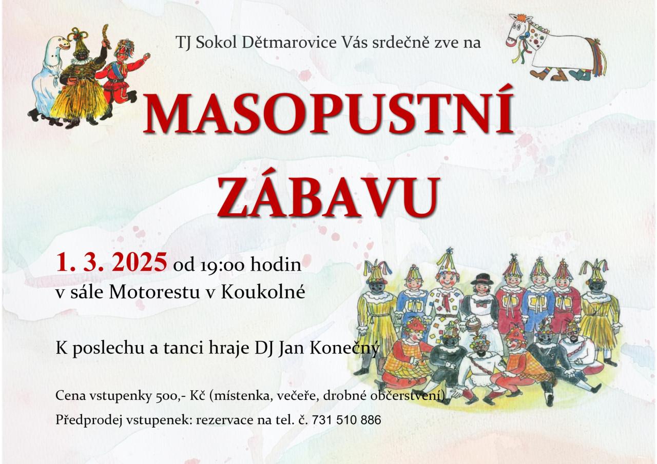 TJ Sokol Dětmarovice zve na Masopustní zábavu